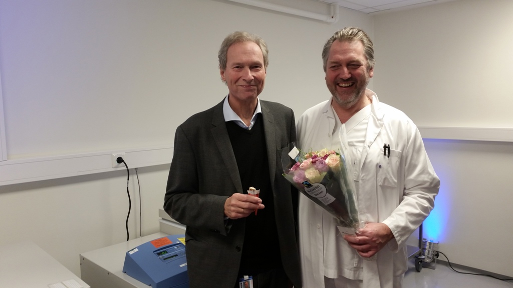 Åtte millioner til forskning på Bærum Sykehus Publisert av Anne Jespersen den 16.02.20. Oppdatert 03.03.20. Forskningsprosjektene omfatter blant annet atrieflimmer, prostatakreft, blærekreft og opptrening av hofter etter operasjon. To glade mottakere, Professor Arnljot Tveit til høyre og Direktør Jardar Hals til venstre.